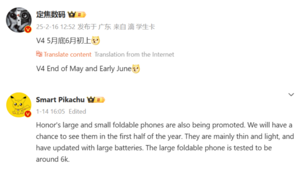 While the details about the phone are still scarce, Smart Pikachu, another leaker on Weibo, claimed that the phone would have a bigger battery with around 6000mAh capacity. This is a huge upgrade from the 5150mAh battery in the Magic V3. The account also shared that it would remain “thin and light,” although it is unknown if it would be thinner than the Find N5 or the Magic V3. To recall, the latter offers the following: