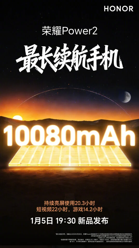 Honor shared that the Honor Power 2 model would be officially revealed in the first week of 2026. Ahead of the phone’s arrival, however, its key details have already emerged online.
