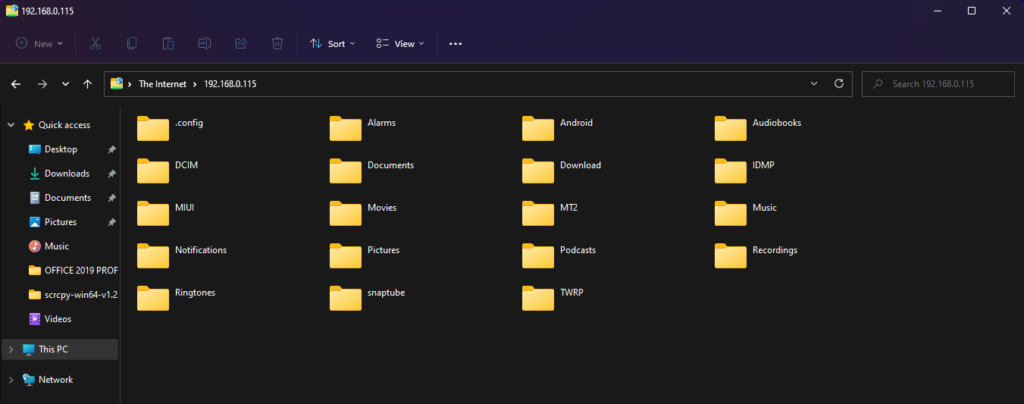 The output address is the address of our FTP server. We will enter the resulting address into the computer’s file manager.