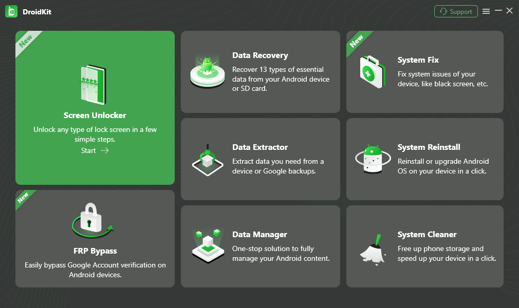 Step 1: Get DroidKit downloaded and launch it on either a Mac or PC. From here, choose the option for the Screen Unlocker on the main menu.