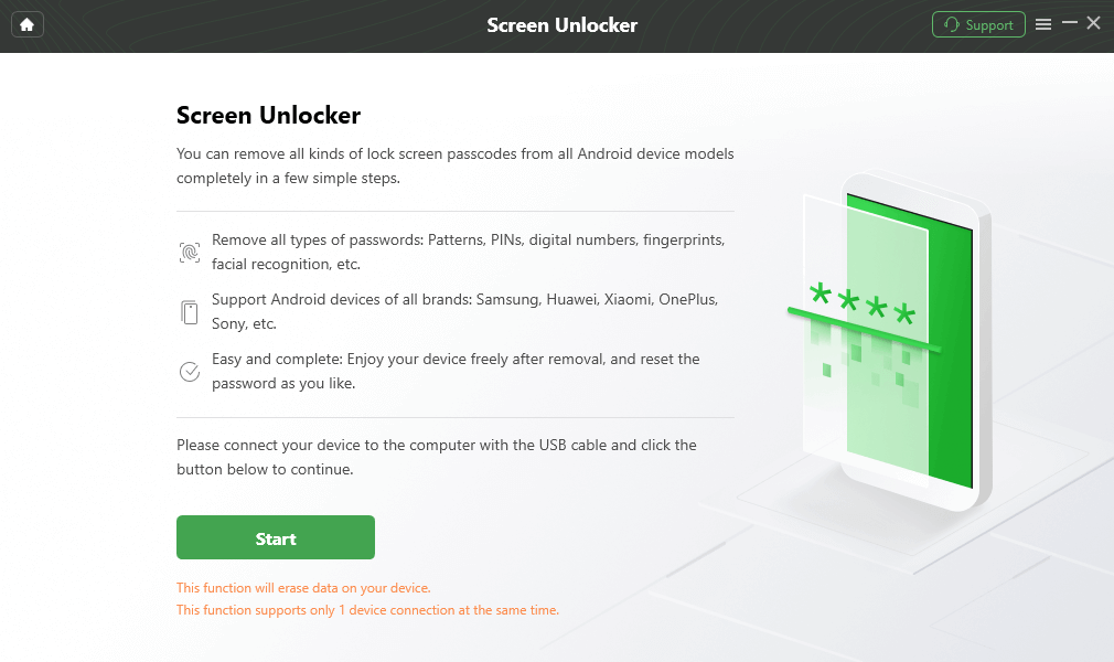 Step 2: Use the USB to connect your Xiaomi phone that’s locked into the computer and click on Start.