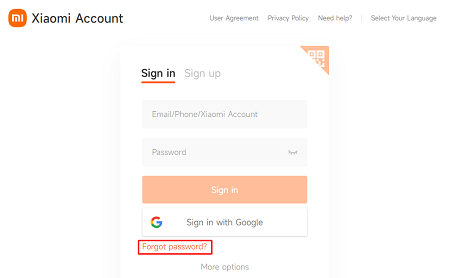 Steps to unlock Xiaomi phone via Forgot Password