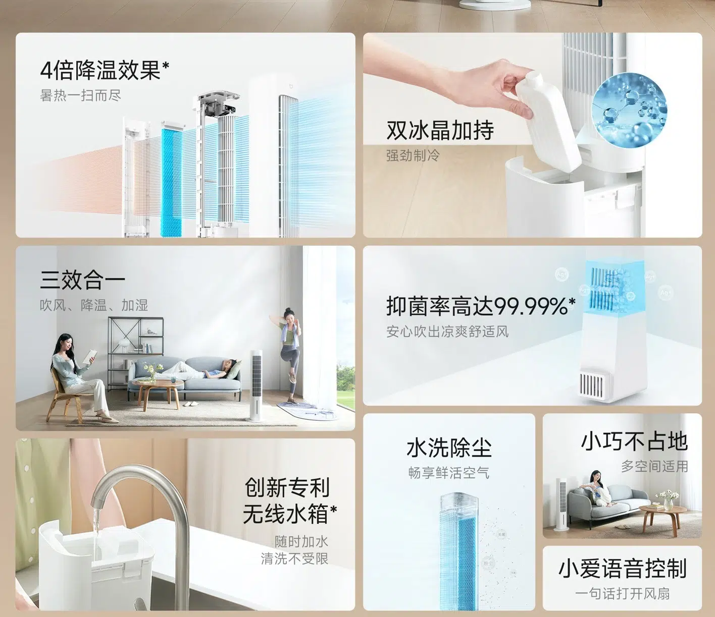 Priced at 599 yuan, the Xiaomi Mijia Smart Fan delivers a three-in-one functionality, combining blowing, cooling, and humidifying effects. With its circulation water cooling system, users can experience customizable cooling effects by adjusting the water and ice crystal levels. This innovative fan is designed to create a comfortable environment, providing relief from hot weather while maintaining an optimal level of humidity.