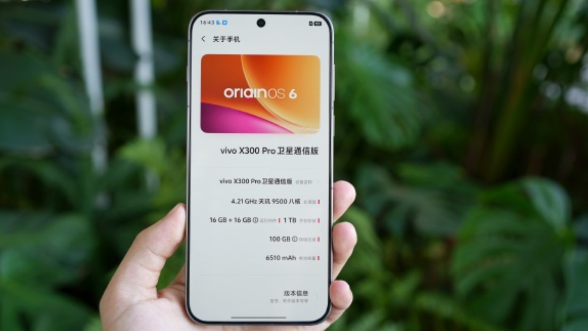 The phone’s About page is also included in the leak, confirming its MediaTek Dimensity 9500 chip, 16GB RAM, 1TB storage, 6510mAh battery, and OriginOS 6.