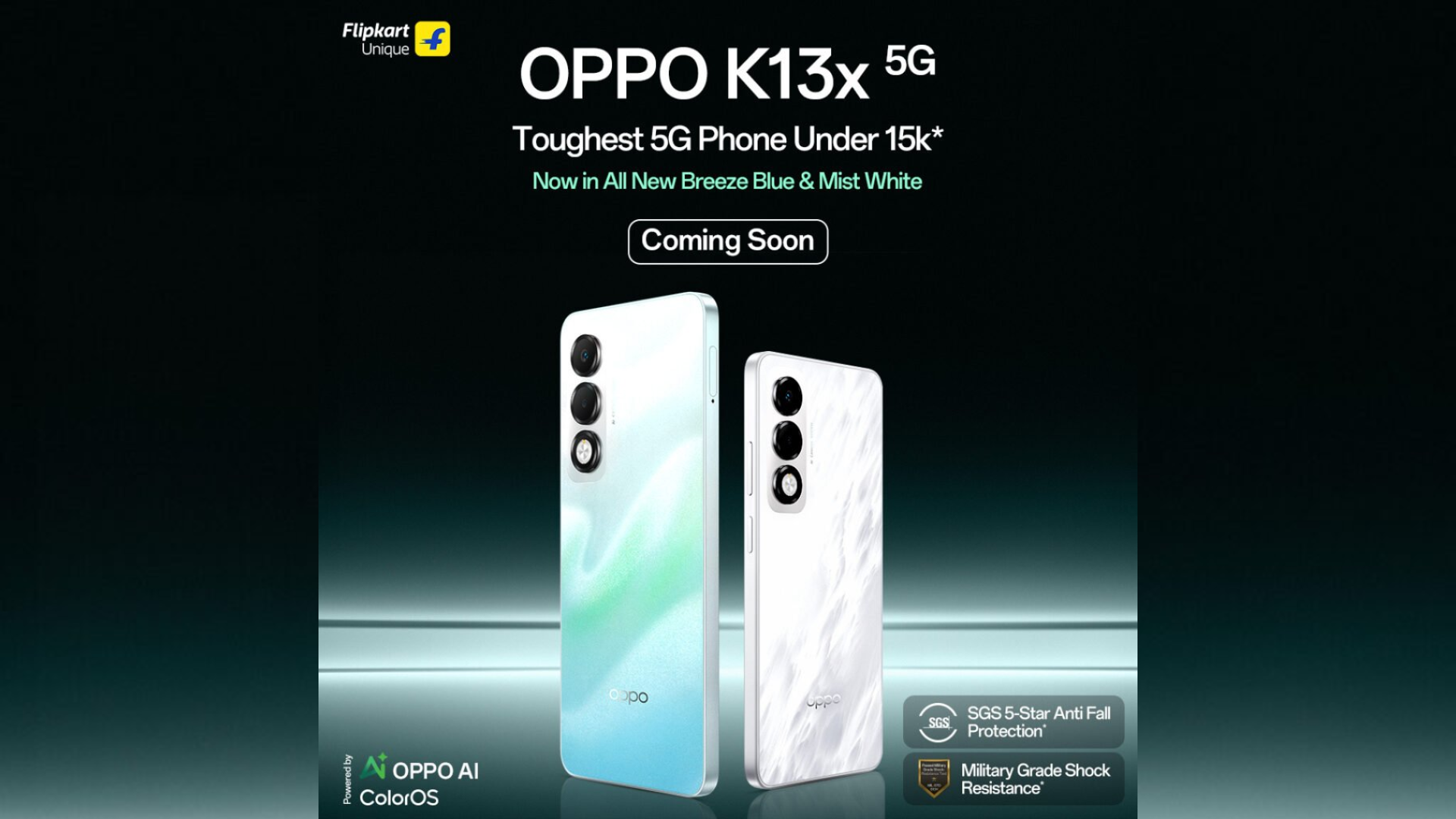 Oppo announced that it would soon offer the Oppo K13x 5G in Mist White and Breeze Blue variants.