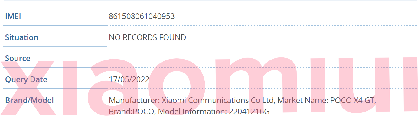 POCO X4 GT market name spotted, confirmed on IMEI database