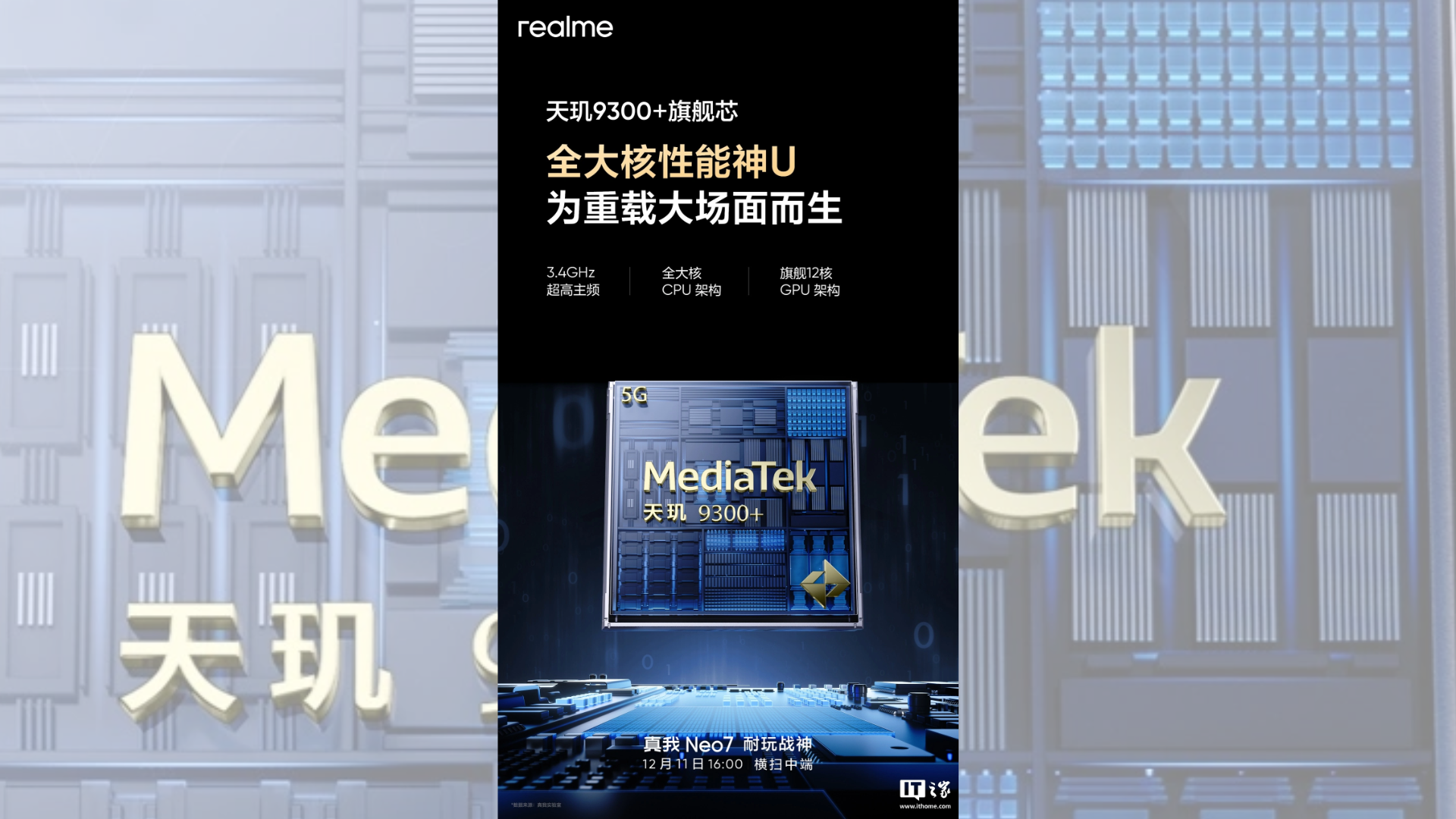 Realme announced that its upcoming Realme Neo 7 is armed with a Dimensity 9300+ chip.