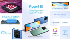 The Redmi 10 flaunts a 6.71-inch HD+ 60Hz refresh rate screen with a standard waterdrop notch on the front. It’s just an ordinary display, and probably what one should expect in this price range. It is powered by the Qualcomm Snapdragon 680 4G SoC, paired with up to 6GB of LPDDR4x based RAM and 128GBs of UFS 2.2 based storage. It will be backed by a 6000mAh battery with support of 18W fast wired charging.