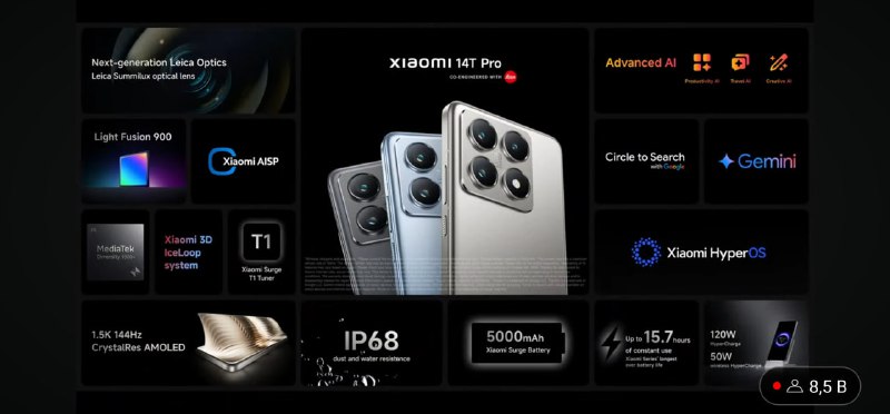 - 5000mAh battery, 120W fast charging, 50W wireless charging