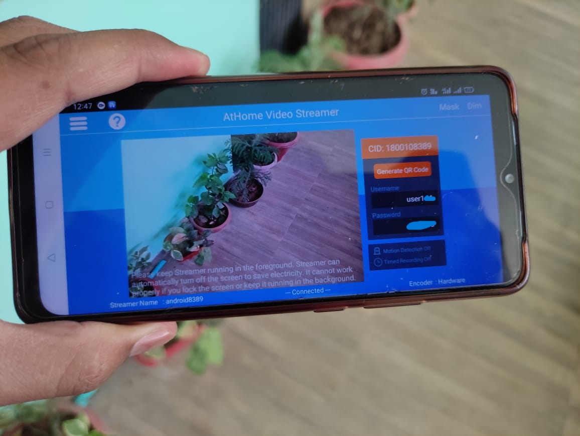 1. Install the AtHome Video camera app on your old device. This app will enable your old device to function as a security camera. A unique Connection ID will be assigned to the device after you’ll launch the AtHome app for the first time which you will need to enter into the device which you want to use as a monitor.