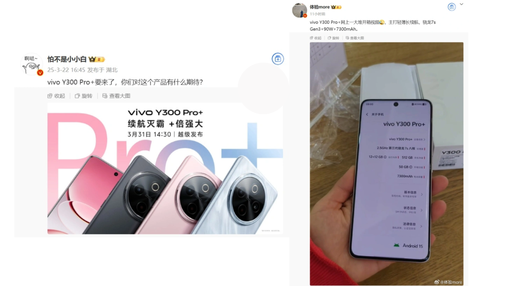 The Vivo Y300 Pro+ will soon join the Vivo Y300 series, which already has the vanilla Vivo Y300, Vivo Y300 Pro, and Vivo Y300i. The model will be unveiled in China at the end of the month.