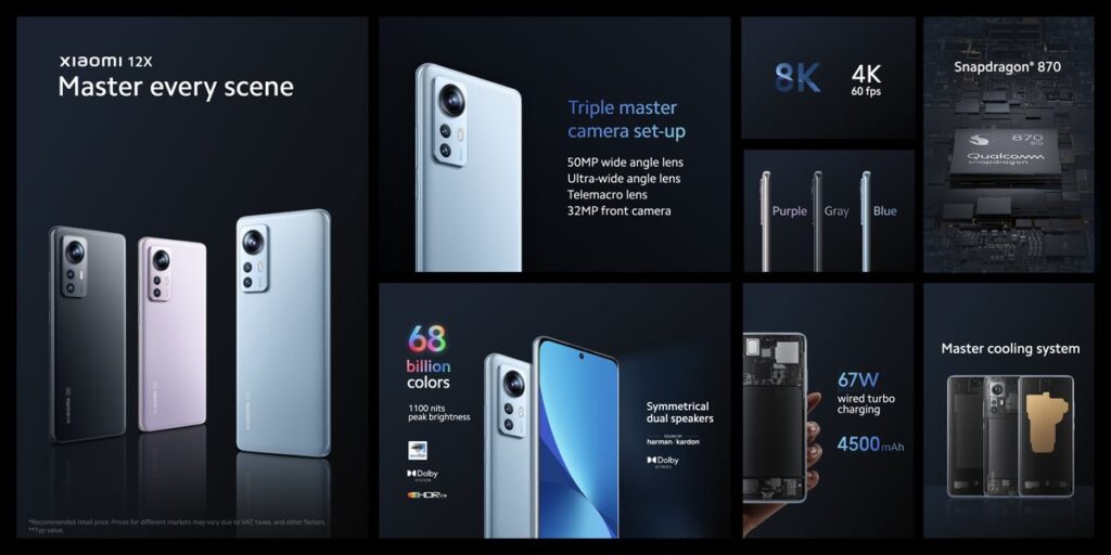 Xiaomi 12X comes out of the box with MIUI 13 based on Android 11. Device tuned by Harman Kardon stereo speakers. Also it has 8GB/128GB, 8GB/256GB and 12GB/256GB variants. Xiaomi 12X is offered to users with a price of starting at 649$.