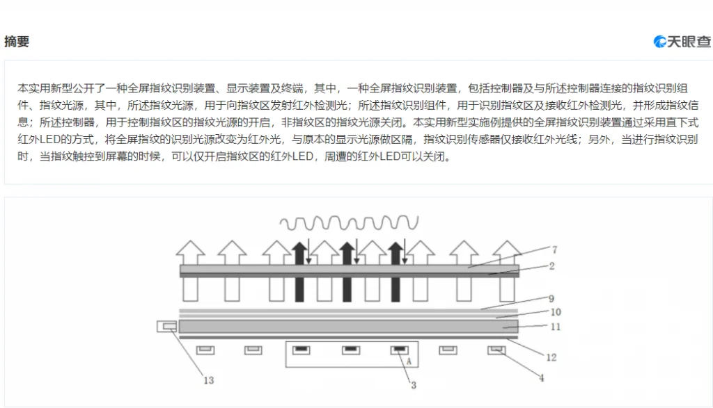 In the patent, Xiaomi demonstrates how the technology works, as it will have a set of infrared LED light transmitters under the capacitive touch screen layer and above the usual AMOLED display. Infrared light receivers will be located above the infrared LED light transmitters. All the infrared LED light transmitters and receivers mentioned above are the basic building blocks of a full-screen fingerprint scanner.