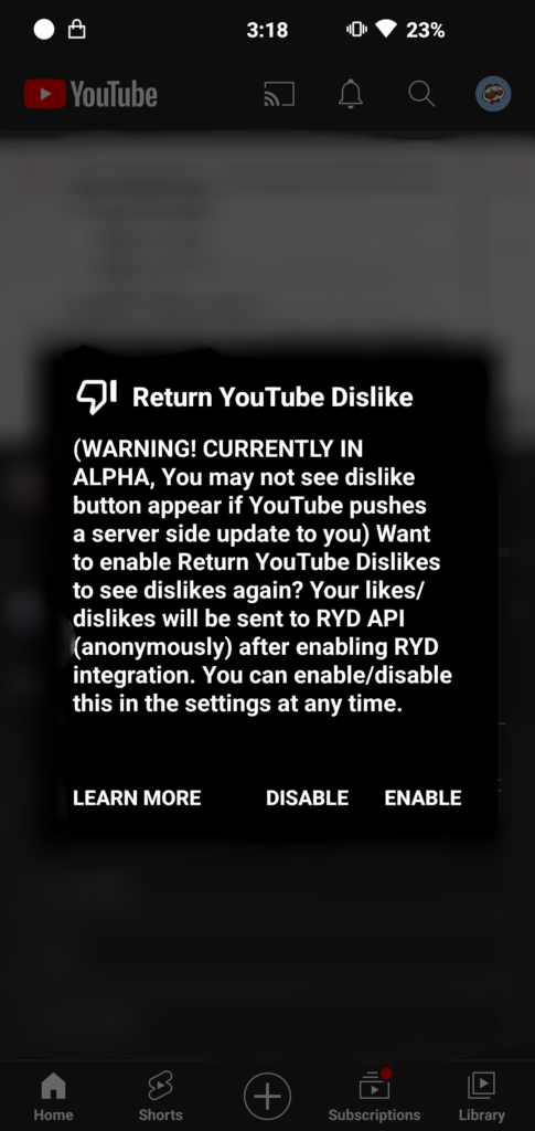 Do you miss the dislike button? returnyoutubedislike API is now available with Vanced app on Android. Google removed the dislike count on YouTube to protect the creators as they claim. A quote from Youtube: “We want to create an inclusive and respectful environment where creators have the opportunity to succeed and feel safe to express themselves.” may look good at the first glance but this has zero advantage for the users. Owner of the video can still see the dislike counts. Weren’t this made to make the content creators feel good? This is a good step or not you are able to revert this with latest Vanced update now. Nevertheless the developers found a way to revoke that decision.